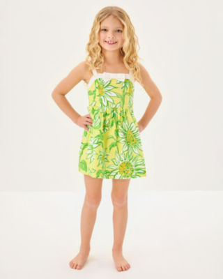 • Strappy, fit-and-flare dress with contrast details, a neckline bow, and lining. This style also features a back smocked panel and side seam pockets.